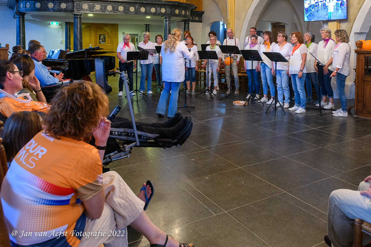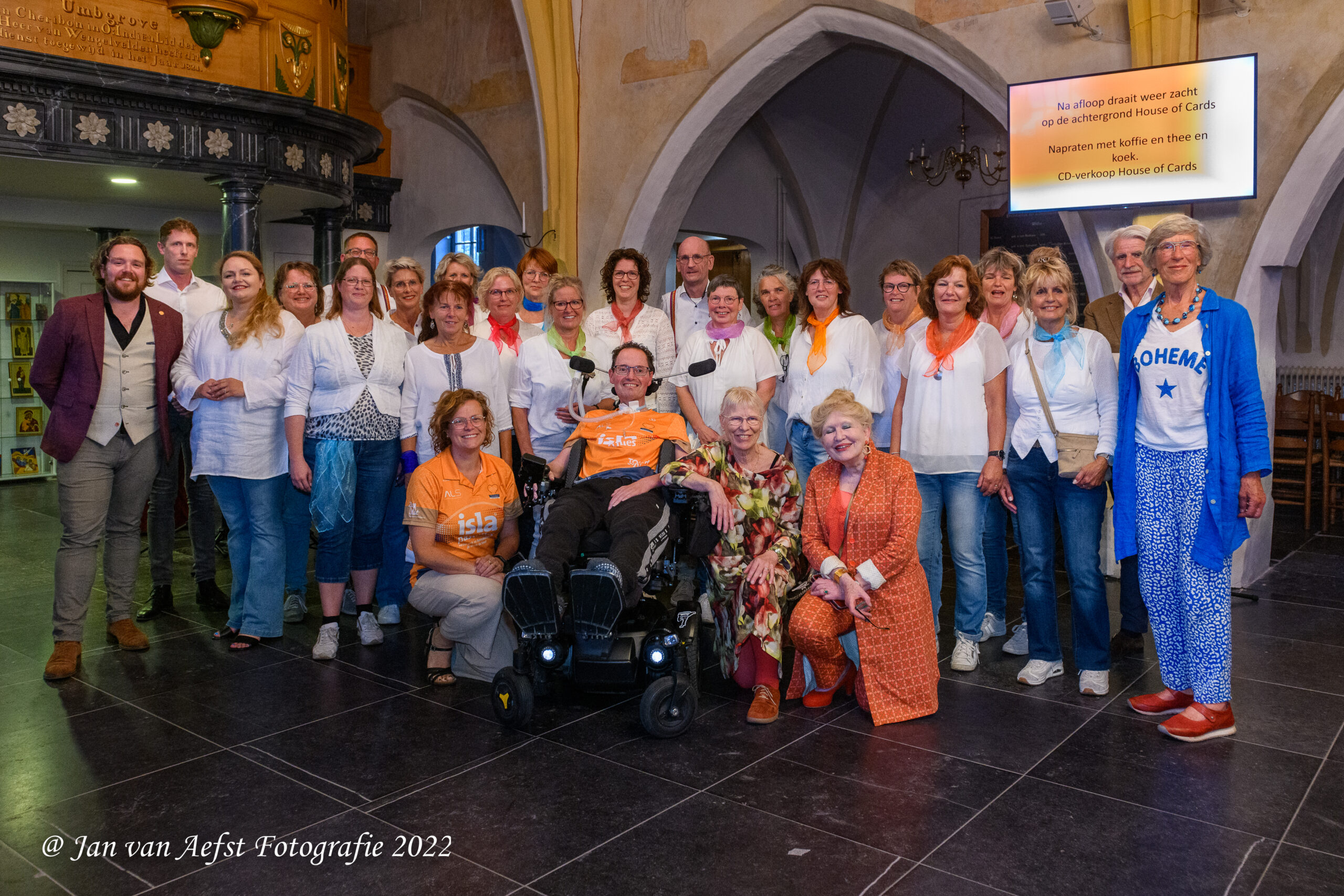Wijhenaar Hanno Bos was als stralend middelpunt aanwezig samen met lot- en teamgenoten. De belangstelling was groot voor deze eerste inzamelactie met muziek en zang ten bate van Stichting ALS Nederland. Marvin Dee gaf toelichting over het lied ‘House of Cards’. Rob van Horssen moest helaas om persoonlijke reden afzeggen. TeamALS Hanno gaf een hartverwarmend verslag van de beklimming van de Mont Ventoux afgelopen juni.