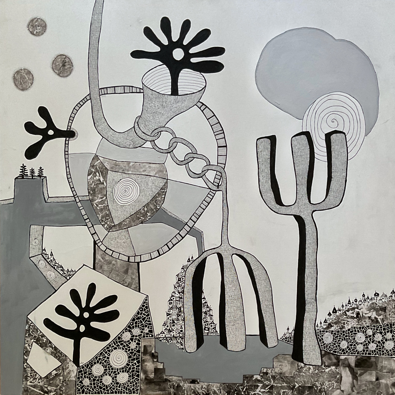 Christien de Jong is geen onbekende in Wijhe; haar kenmerkende stijl is op diverse plekken te bewonderen. Wie haar atelier bezoekt, ziet een explosie van vormen, materialen en enthousiasme om iets nieuws te scheppen. Sylvia Hubers exposeert in Woord & Beeld nieuw werk en gedichten die al in haar bundels zijn verschenen. Sommige teksten resoneren met het werk van Christien. Deze ontmoetingen vormen het hart van de expositie. Te zien is ook het tweepersoons-bladerboek ‘Zelven’ waarin Sylvia haar linkshandige tekeningen met rechtshandige teksten combineert.
