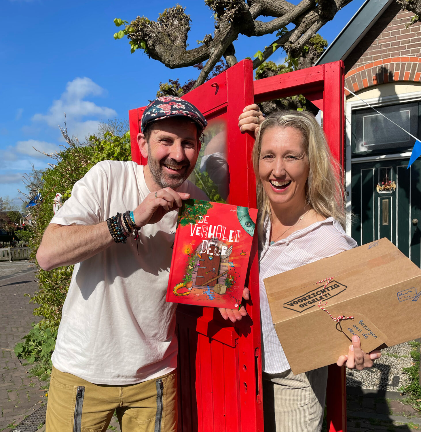 De boekrelease is méér dan een presentatie: het publiek wordt meegenomen in een korte voorstelling waarin een geheimzinnig pakket, een verdwijnende bezorger en een kleurrijke, zelfgebouwde deur op wielen de hoofdrol spelen. Wat zit er in de doos? En wat gebeurt er als de Verhalendeur écht openzwaait?