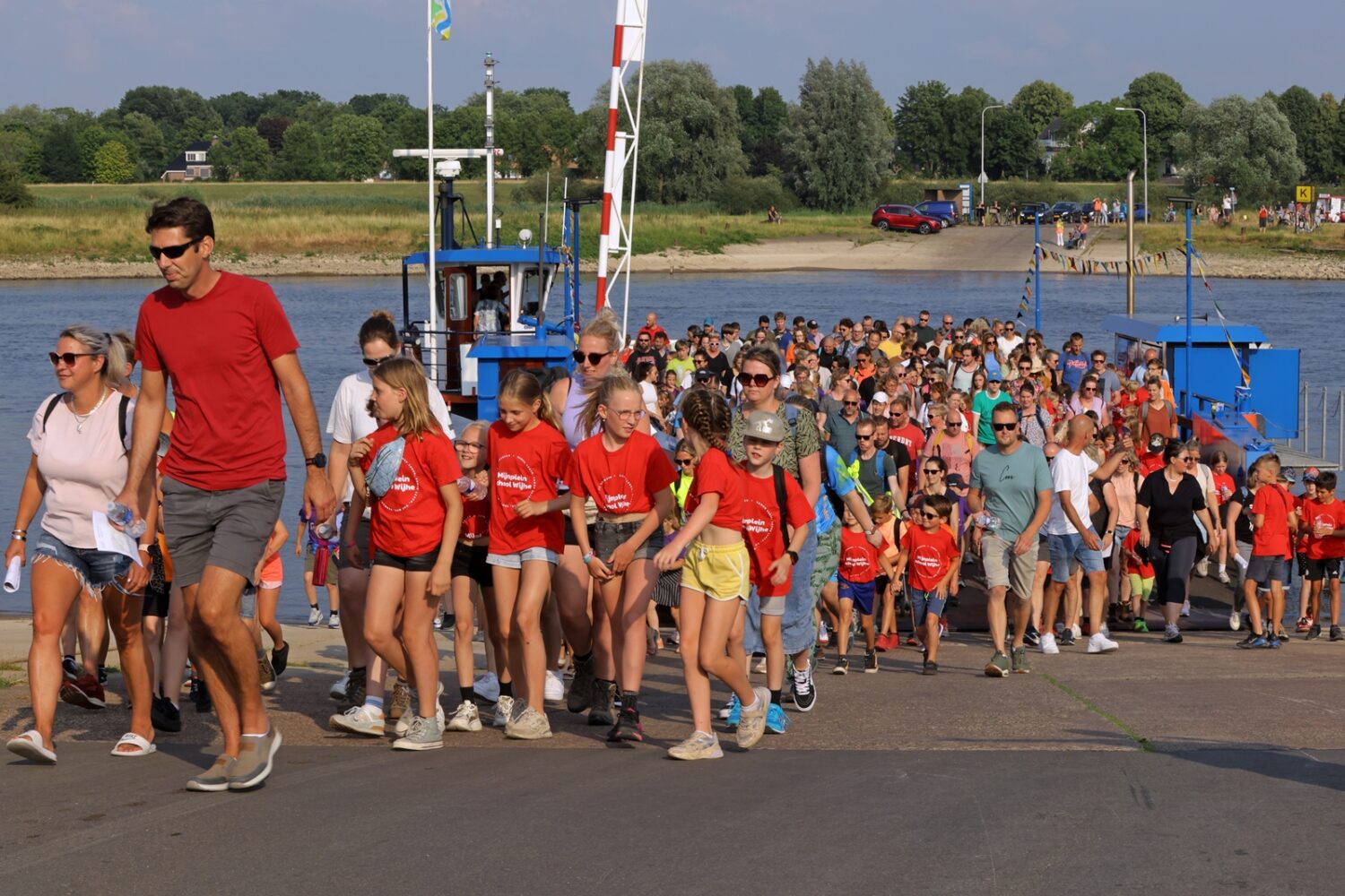 Op woensdagavond verzamelde een grote groep wandelaars vol energie bij de pont, klaar om de uitdaging aan te gaan. Het plezier spatte ervan af en met een stevige pas begonnen ze aan de eerste etappe. De sfeer zat er meteen goed in, en de wandelaars genoten van elkaars gezang terwijl ze de prachtige route aan de overkant van de IJssel langs Vorchten bewandelden.